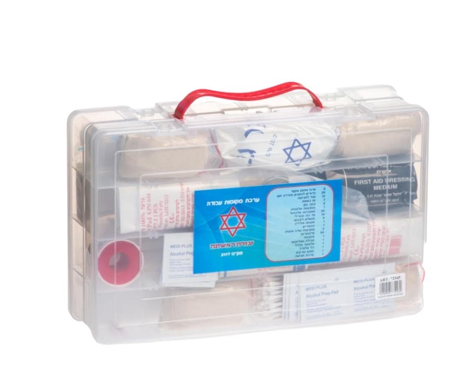 ערכת עזרה ראשונה מקצועית במזוודה קשיחה מותאמת לתקן בטיחות בעבודה ולדרישות משרד התחבורה כוללת ציוד עזרה ראשונה חיוני לשימוש מיידי בשעת חירום מתאימה למקומות עבודה עד 50 עובדים עומדת בתקן לרכב פרטי וגם לרכב ציבורי