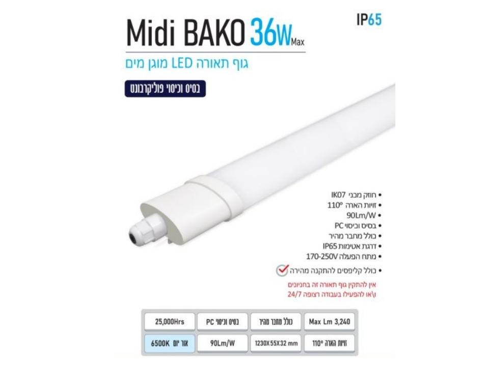 גוף תאורה לד מוגן מים | אור יום | MIDI BAKO 36W