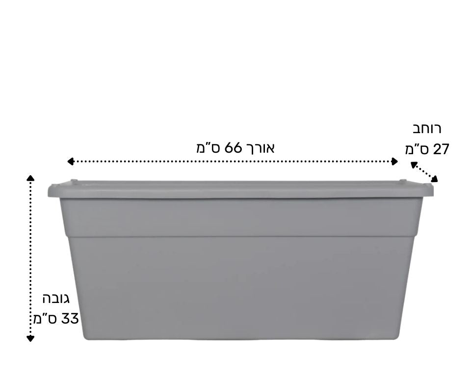עיצוב מלבני מאוזן ונקי, המשתלב בקלות עם מגוון סגנונות עיצוב – קלאסי, מודרני ומינימליסטי. מתאימה להצבה במרפסת, בגינה, לאורך קירות או בסמוך לחלונות.