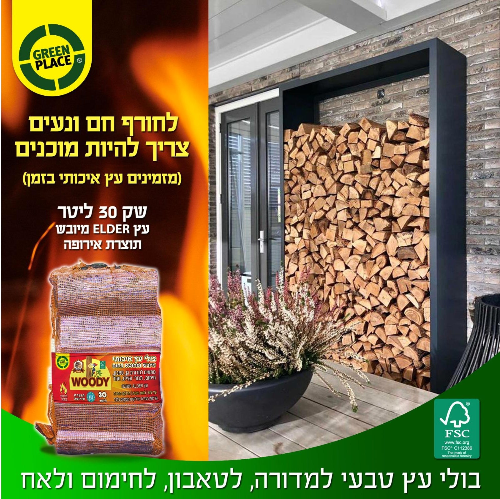 עץ Alder משובח המתאים למדורת גן, טאבון, חימום, תנורי עצים ועוד