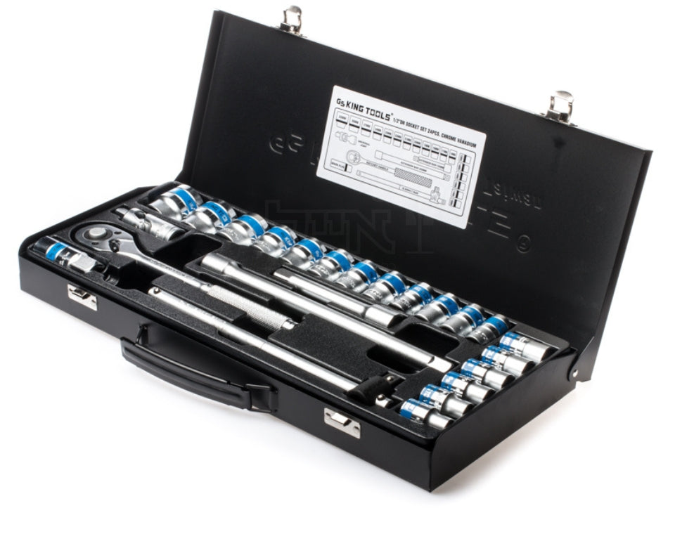 סט בוקסות דרייב “1/2, 10-32 מ”מ 24 חלקים בקופסת מתכת
