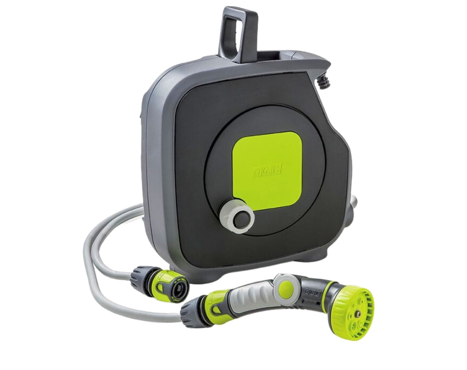 גלגלת השקיה צבע ירוק צינור 11.5 מטר כולל אקדח וחיבורים, של חברת GF האיטלקית, במחיר נוח ומשלוח מהיר ,באייל לבית ולגן