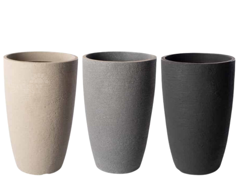 כד גבוה ובעל נוכחות מרשימה, עם קווים נקיים וגימור חיצוני מט במרקם מחוספס למראה מודרני ויוקרתי. משתלב היטב במרפסות, גינות פרטיות, חללים פנימיים, בתי קפה ומשרדים. מגיע בשלושה צבעים: שחור, אפור וחול.