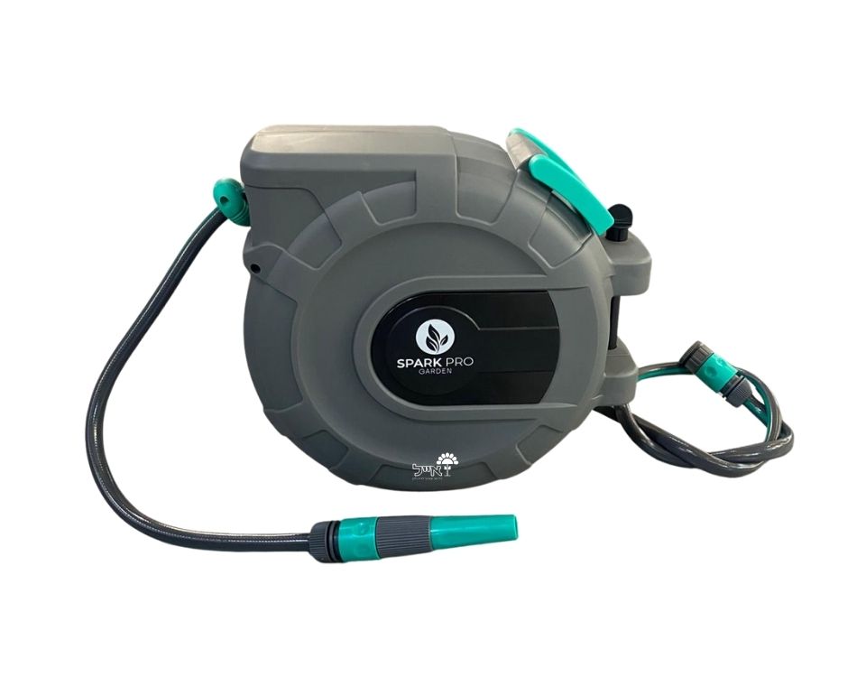 גלגלת השקיה אוטומטית 10 מטר SPARK PRO, גלגלת וצינור השקיה באורך 10 מטר גלגלת מפלסטיק איכותי ועמיד במחיר נוח ומשלוח מהיר באייל לבית ולגן