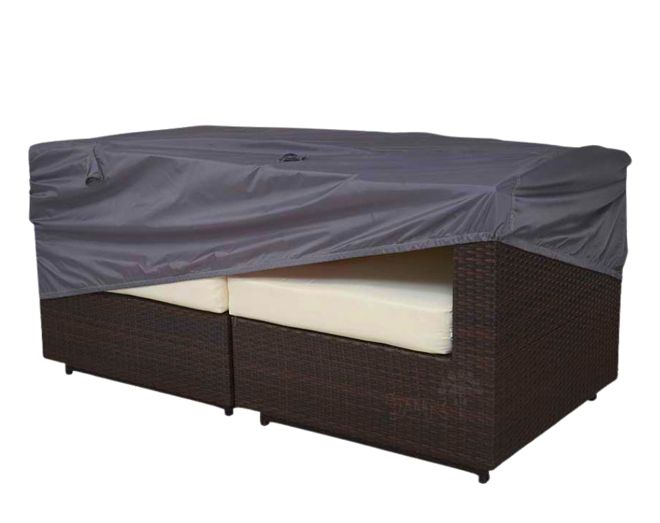 עשוי 100% פוליאסטר בציפוי פוליאוריטן. כולל פתחי אוורור, גומיות הצמדה פנימיות וסגירות ייעודיות לעמידה ברוחות חזקות. נושם, דוחה מים ועמיד בפני גשם וקרינת שמש, לשמירה על ריהוט הגן לאורך זמן.