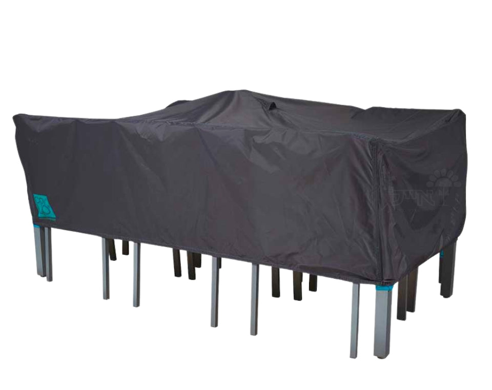 עשוי 100% פוליאסטר בציפוי פוליאוריטן. כולל פתחי אוורור, גומיות הצמדה פנימיות וסגירות ייעודיות לעמידה ברוחות חזקות. נושם, דוחה מים ועמיד בפני גשם וקרינת שמש, לשמירה על הריהוט לאורך זמן.