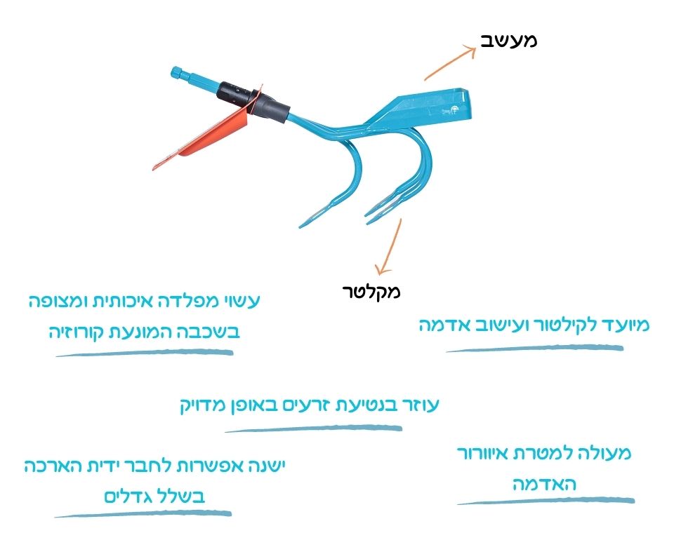 בנוי מ-3 שיניים חזקות כלפי מטה לקלטור ואוורור הקרקע.