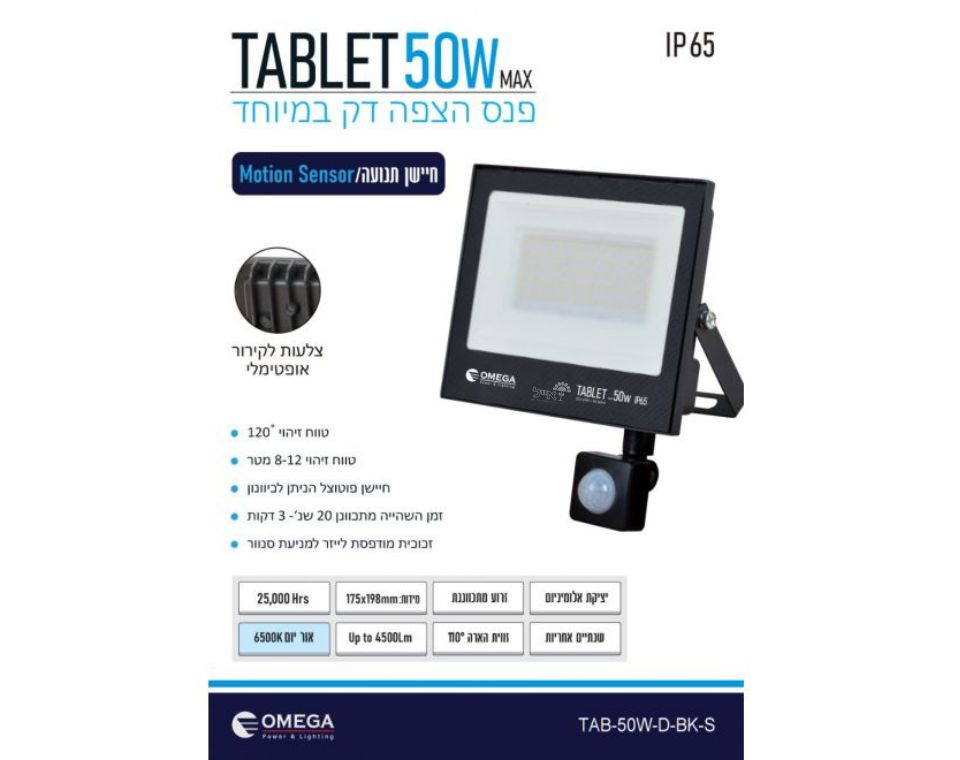 פנס הצפה דק במיוחד עם 50W, משלוח מהיר, מגיע עם חיישן תנועה מזהה בטווח של 8-12 מ', ו כ- 120 מעלות, צלעות לקירור אופטימלי, מחיר זול, זווית ההארה של הפנס הינו כ- 110 מעלות, זרוע מתכווננת, זכוכית מודפסת לייזר למניעת סינוור