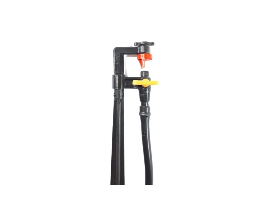 מתז השקייה הממטיר ברדיוס של 360 מעלות מעולה לשימוש בגינה, מדשאה, גידול ירקות המתז מגיע עם צינורית ויתד פלסטיק לנעיצה באדמה, אורך היתד 38 ס''מ למתז ישנו ברזון בקרה לשליטה על יציאת המים