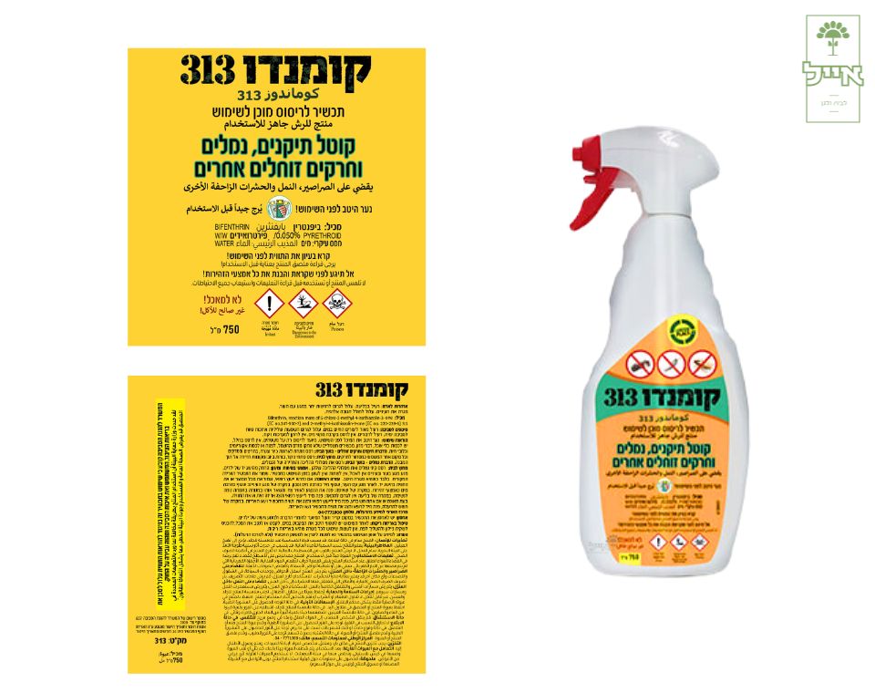 קומנדו 313 | תרסיס קוטל תיקנים, נמלים וזוחלים אחרים | 750 מ”ל