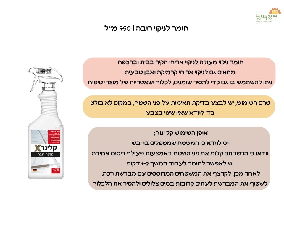 מתאים גם לניקוי אריחי קרמיקה ואבן טבעית