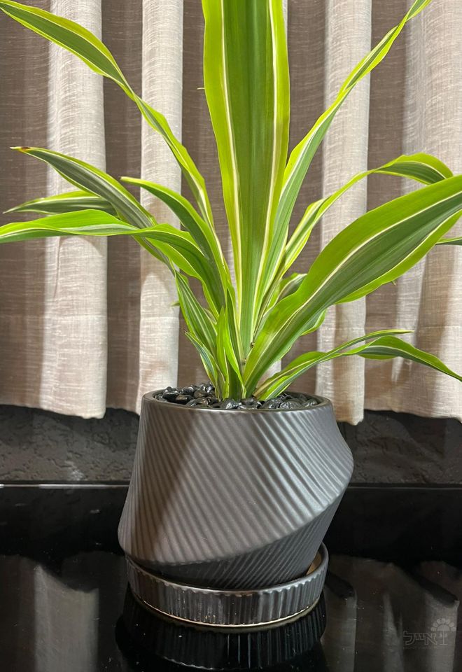 כד דקורטיבי בעיצוב נקי ומודרני, אידיאלי לשימוש בבית ומעולה כמתנה. הכד מגיע שתול בצמח דרצנה, בשילוב אבנים דקורטיביות שחורות וחלקות המשדרגות כל חלל בבית ובמשרד.