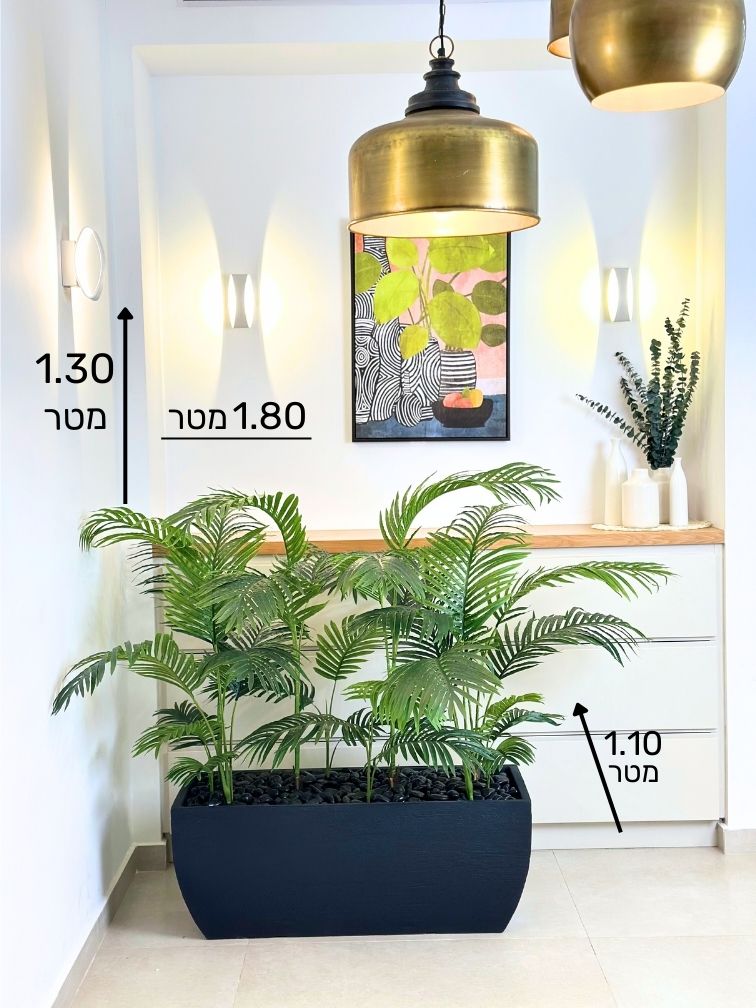 עציץ מלאכותי דקל, באדנית גונדולה גדולה, גובה 1.30 מטר, אייל לבית ולגן, מידות האדנית גונדולה הגדולה: גובה 38 ס”מ, רוחב 38 ס”מ, אורך 95 ס”מ מידות עם הכד: גובה 1.30 מטר, רוחב 1.10 מטר, אורך 1.80 מטר בעל מראה טבעי, צמח מיוחד יוקרתי ומרשים "גרדן מרקט" מתמחה במוצרים איכותיים ועמידים לאורך זמן המוצרים ברמה הגבוהה ביותר בשילוב של גזעים טבעיים, פלסטיק ומשי