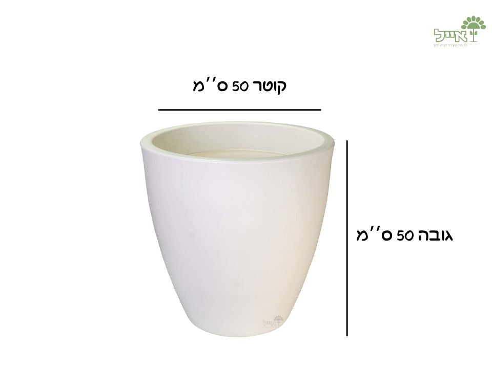 מבנה ועיצוב: מבנה מעוגל וחלק, הצורה הקונית יוצרת תחושת גובה ונוכחות, גם כששותלים בו צמחים נמוכים או גבוהים, משתלבת בקלות במגוון סגנונות עיצוב.