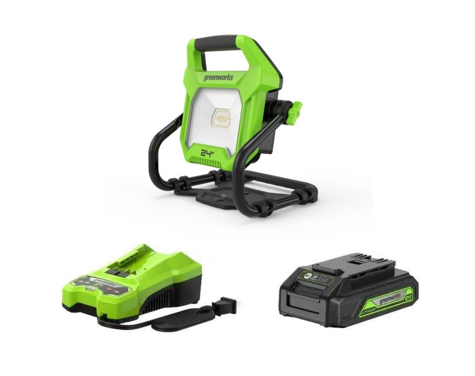 תוצרת חברת greenworks, מעולה לעבודה בשטח או קמפינג ידית נשיאה לנוחות מירבית, פעולה רציפה למשך כ- 9 שעות, ניתן לתלייה שוקל 1.64 ק''ג מסתובב 360 מעלות בעל 2 עוצמות אור מגיע עם סוללה 2Ah ומטען מיקרו שנתיים אחריות יבואן רשמי