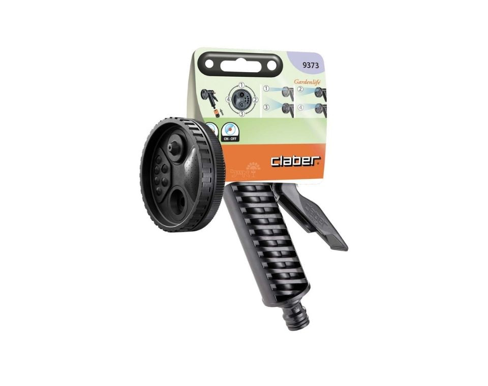 אקדח השקייה מקצועי של חברת CLABER, דגם 9373 בעל 4 אפשרויות התזה, מקנה שליטה על אופן זרימת המים בעת ההשקייה ידית לחיצה אחורית, מאפשר שליטה בכמות המים בקלות על ידי לחיצה אקדח ההשקייה מיוצר מחומרים עמידים וחזקים, מוצר אמין שישמר לאורך שנים מתאים למחבר מהיר QUICK-CLICK, פטנט רשום של החברה CLABER האקדח מגיע בנוסף עם קליפס לזרימה ממושכת, עובד בקלות ונוחות שחרור הקליפס נעשה על ידי הורדת הקליפס למטה עיצוב מרהיב ומעניין, קל להתקנה ולשימוש מעולה להשקיית עציצים בגינה ומתאים לשטיפה נקודתית בגינה ובמרפסת מיוצר באיטליה על ידי חברת הדגל בתחום הגינון והחקלאות, Claber האקדח מתחבר לצינור גינה דרך מחבר מהיר 1/2’’ ומחבר מהיר 3/4’’ שנתיים אחריות