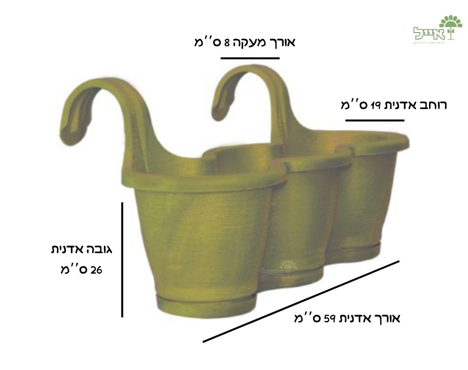 עיצוב מאורך ונקי, מותאם במיוחד לתלייה על מעקות. זמינה כעציץ בודד או כשלישייה ייחודית ומקסימה של עציצים, ליצירת מראה עשיר, מסודר והרמוני לאורך המעקה.