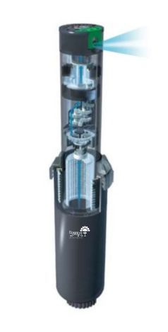 המוצר האופטימלי להשקיית מדשאות בגינות פרטיות טווחי ההשקיה 4.6 עד 9.1 מטר, בעל קשת מתכוננת 40° ל- 360°