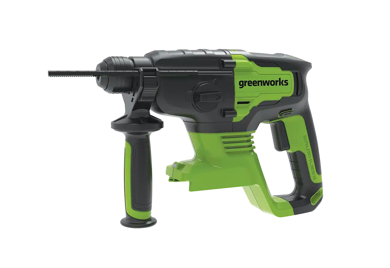 של חברת Greenworks, לעבודות הקשות והמדויקות ביותר בקידוח בבטון, אבן, עץ או מתכת, ללא פחמים, בתוספת תאורת לד, 4 מצבי עבודה שונים, כושר קידוח: 24 מ"מ בבטון 13 מ"מ בפלדה 38 מ"מ בעץ