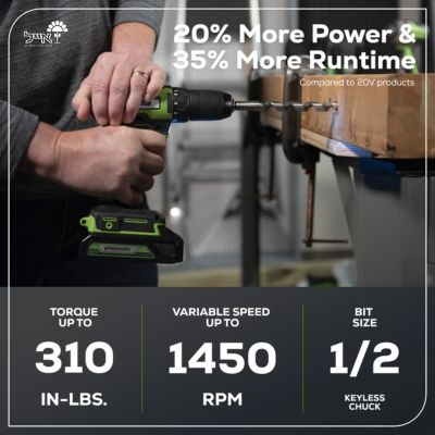 מומנט פיתול של 35 ניוטון מטר (NM) של חברת Greenworks, למשימות קידוח והברגה בחומרים קשים, אפשרות לשינוי מהירות וסל"ד שיתאים לחומר, תאורת LED מובנית, מגיע לחצן עם 2 דרגות מהירות , גודל מפתח הברגה 12.7 מ"מ