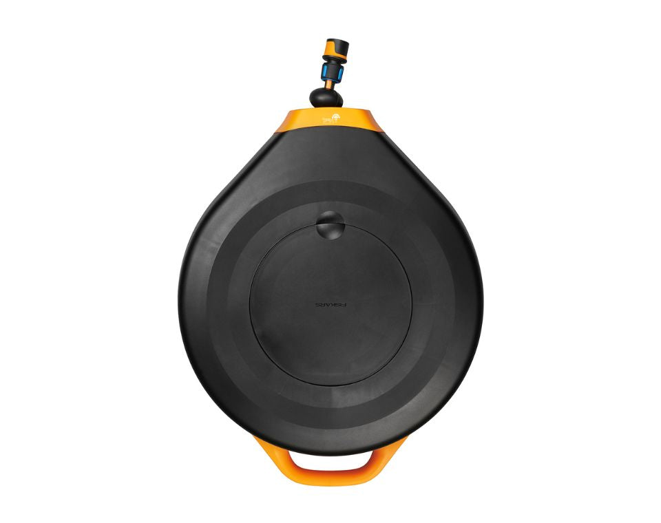 עשויה מחומרים באיכות גבוהה מקלה על תהליך השקיית הגינה, צינור נשלף עד 20 מטר וניתנת לחזרה באופן אוטומטי, המנגנון מונע קשרים בצינור, אורך צינור למקור מים 5 מטר, מסתובבת 360 מעלות לכיסוי מירבי