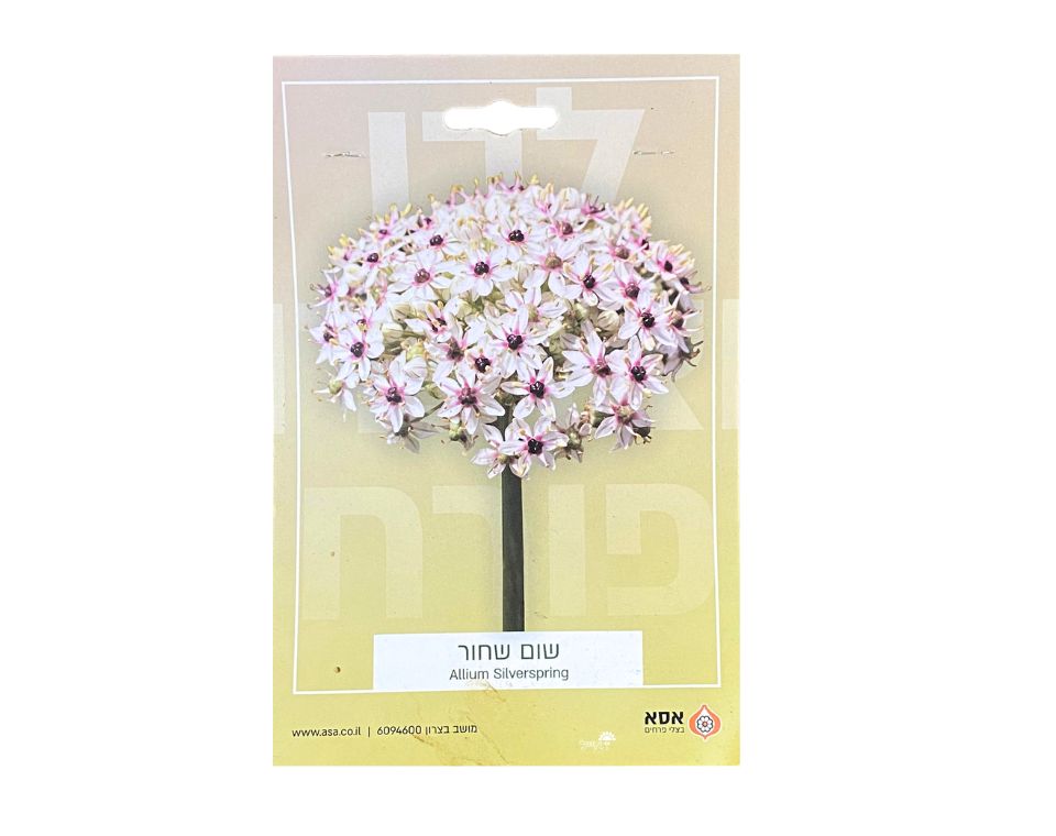 הכניסו צבעים מרהיבים לגינה עם פקעות שום שחור. התפרחת צפופה וכדורית, בקוטר של כ־10 ס"מ, עלי העטיף בצבע לבן וזירי האבקנים בגוון בורדו. הפקעות מתאימות לשתילה באדמה, באדניות ובעציצים, ובהשקיה נכונה ניתן ליהנות מפריחה אביבית מרשימה. פקעת העלים מורכבת מבצלצלים קטנים.