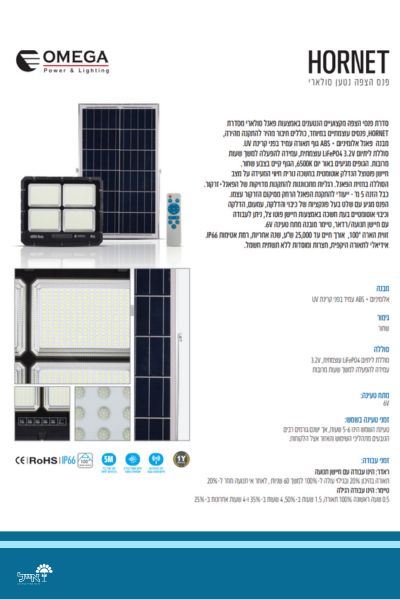 בתוספת רגליות מתכווננות להתקנות מדויקות של הפאנל+זרקור