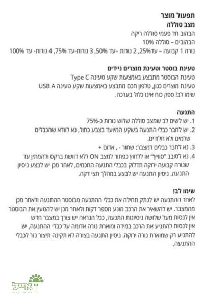 זמן הטעינה של הבוסטר הוא בין 6 ל-8 שעות בלבד