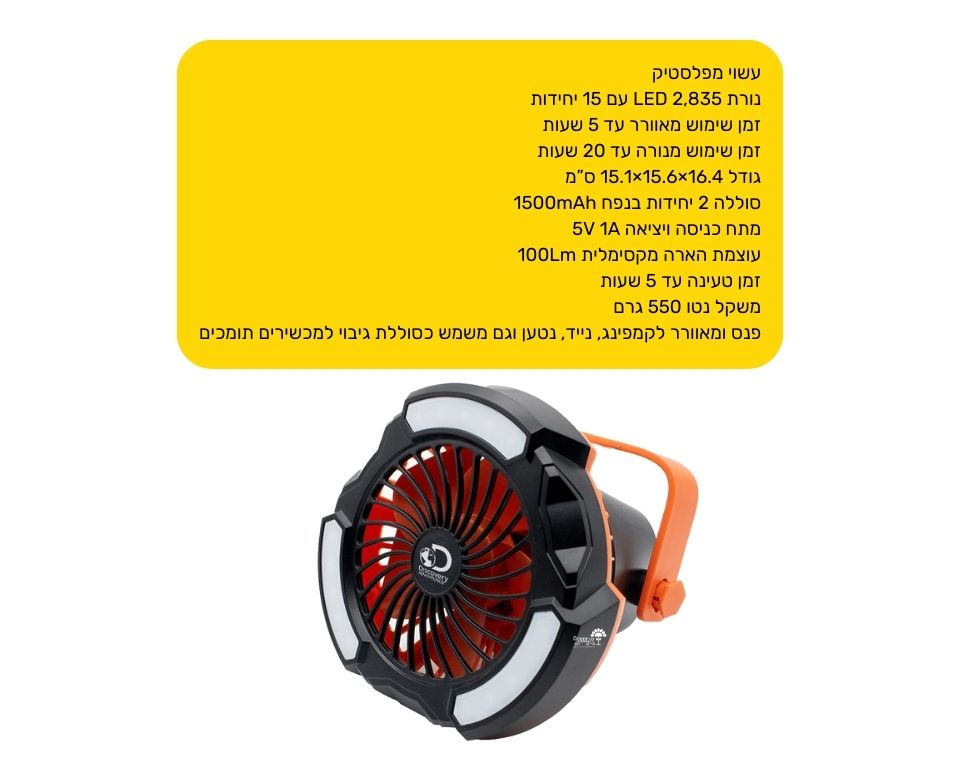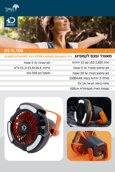 מאוורר ופנס לקמפינג DS FL100 המוצר האידיאלי לכל הרפתקה בשטח