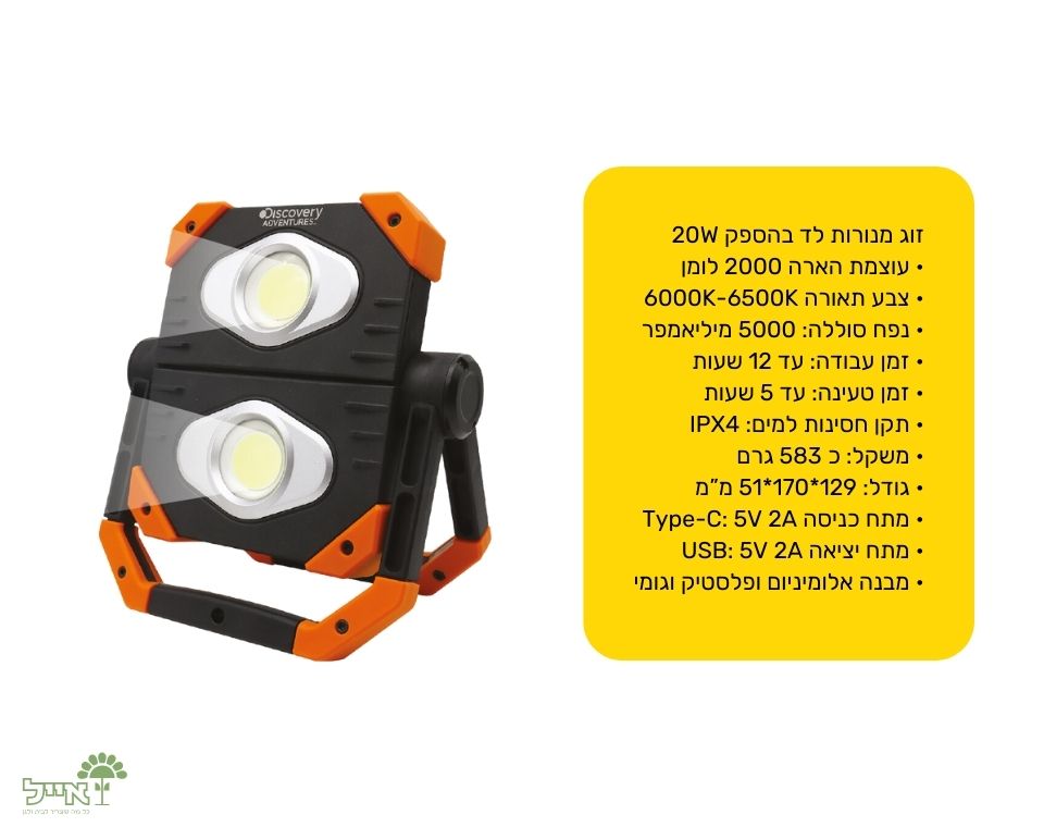 כולל זוג מנורות LED בהספק של 20W עם צבע תאורה של 6000K-6500K לקבלת אור לבן ועוצמתי
