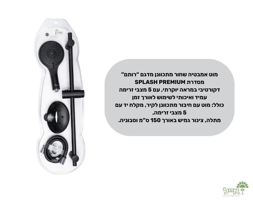מוט לאמבטיה מתכוונן "רותם" 5 מצבים לחוויית מקלחת מתקדמת בגימור שחור יוקרתי, המוט מעניק לאמבטיה מראה אלגנטי ומעוצב המוט מגיע עם מקלח יד בעל חמישה מצבי זרימה שונים מזרם עדין ומפנק ועד זרם חזק ומרענן השילוב של מצבי הזרימה השונים מספק חוויית רחצה מותאמת אישית למגוון צרכים והעדפות המוט מתכוונן ומתאים לגבהים שונים ניתן לכוון את גובה המקלחת בהתאם לנוחות המשתמשים