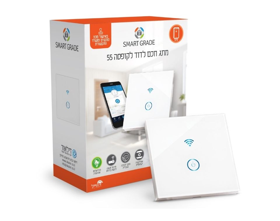 מפסק חכם לדוד שליטה חכמה ונוחה מהטלפון שלך פתרון המתקדם והנוח ביותר לשליטה מלאה על הדוד החשמלי בביתך המפסק מתוכנן להתאים בצורה מושלמת לקופסא 55 הסטנדרטית כך שתוכלו להחליף את המפסק הקיים חיבור ישיר לרשת ה-WiFi הביתית ניתן להפעיל ולכבות את הדוד מכל מקום, בלחיצת כפתור מהטלפון החכם בבית, בעבודה ואפילו מחו"ל