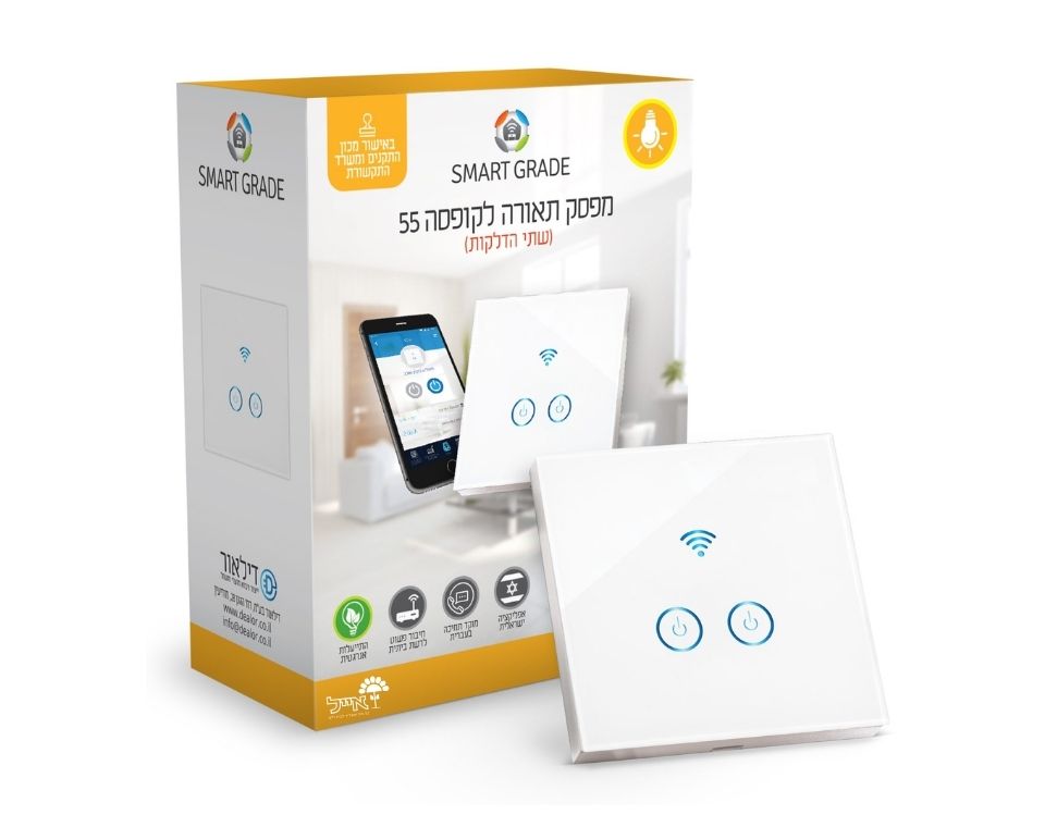 מפסק חכם לתאורה עם שתי הדלקות לקופסא 55 פתרון מתקדם המשלב בין עיצוב אלגנטי, טכנולוגיה מתקדמת ונוחות שימוש מקסימלית
