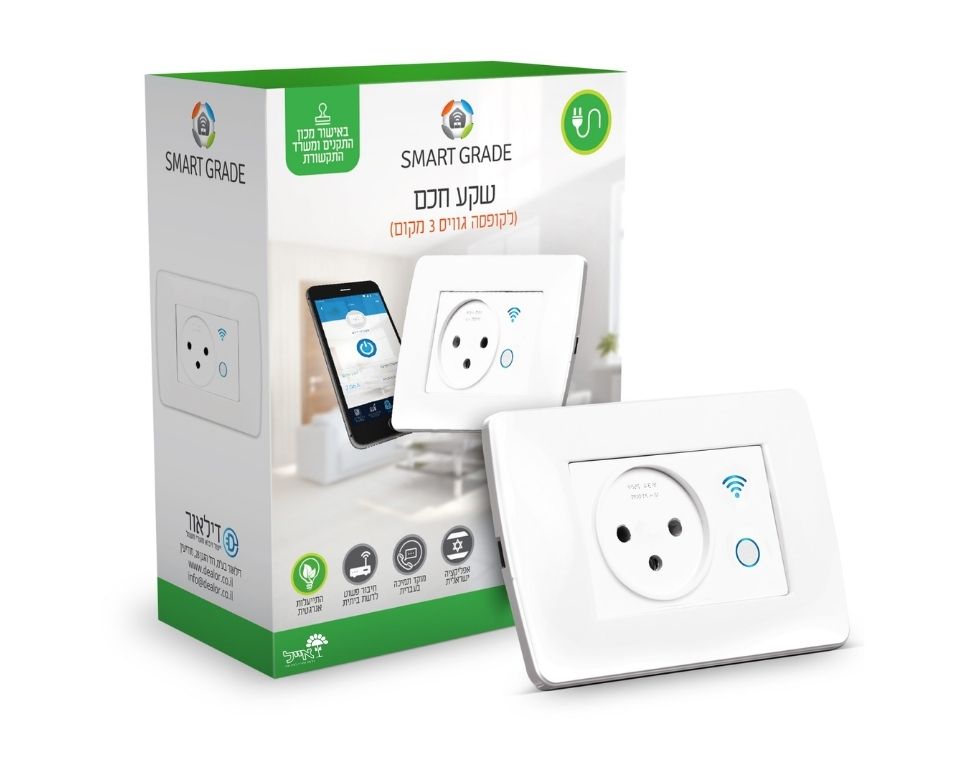 מפסק חכם לשקע להתקנה קבועה בגוויס בעיצוב מתקדם המשלב בין עיצוב אלגנטי, טכנולוגיה מתקדמת ונוחות שימוש