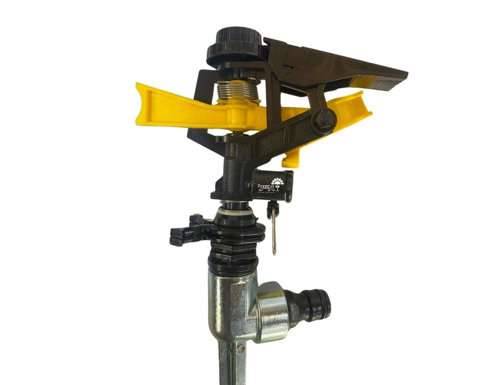 ממטרת פטיש ננעלת עם גוף מתכת פתרון השקיה עוצמתי ומדויק מתאימה במיוחד להשקיית שטחים בינוניים עד גדולים כמו מדשאות, ערוגות ירק, גינות נוי ואף חלקות חקלאיות קטנות מבנה הפטיש מייצר התזה מסתובבת בטווח רחב מבטיח פיזור מים אחיד ויעיל לכל כיוון המנגנון הננעל מאפשר שליטה בזווית ההשקיה – מ־0° ועד 360° ניתן להתאים אותה לכל תוואי שטח ולמנוע בזבוז מים