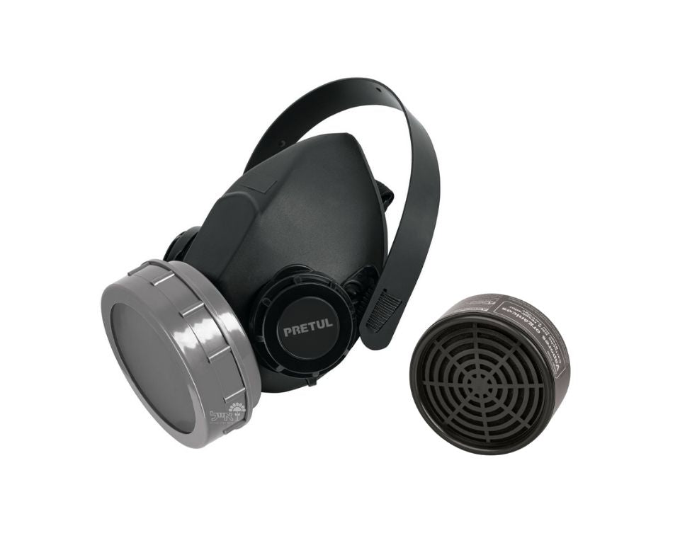 המסכה לריסוס של PRETUL מקצועי ואמין להגנה נשימתית במגוון תחומים, כולל עבודות צבע, ריסוס חקלאי מגומי תרמופלסטי (TPR) איכותי, עם פנים רך לנוחות מרבית מיועדת לשימוש חוזר כוללת שסתום נשיפה המקל על הנשימה ומפחית הצטברות חום ולחות רצועות אלסטיות מתכווננות להתאמה אישית המסכה תואמת לפילטרים מתחלפים של PRETUL