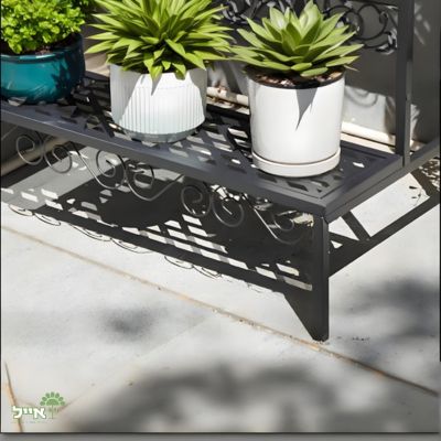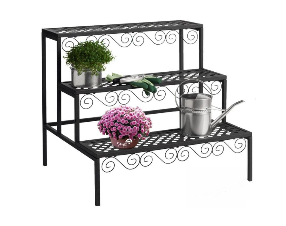 מעמד ברזל מעוטר מדורג לעציצים | 3 קומות | 70X60 | שחור | דגם 69A
