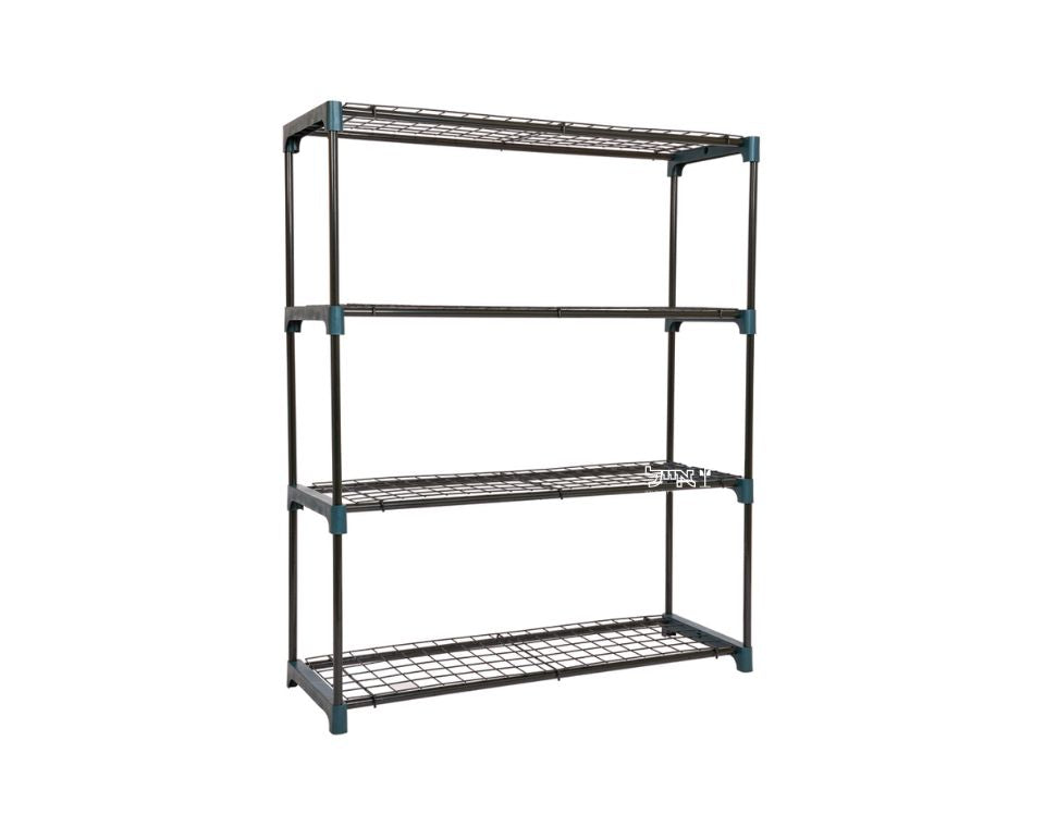 כולל ארבע קומות של מדפי רשת, מאפשר ניצול מרבי של שטח במרפסת או בגינה